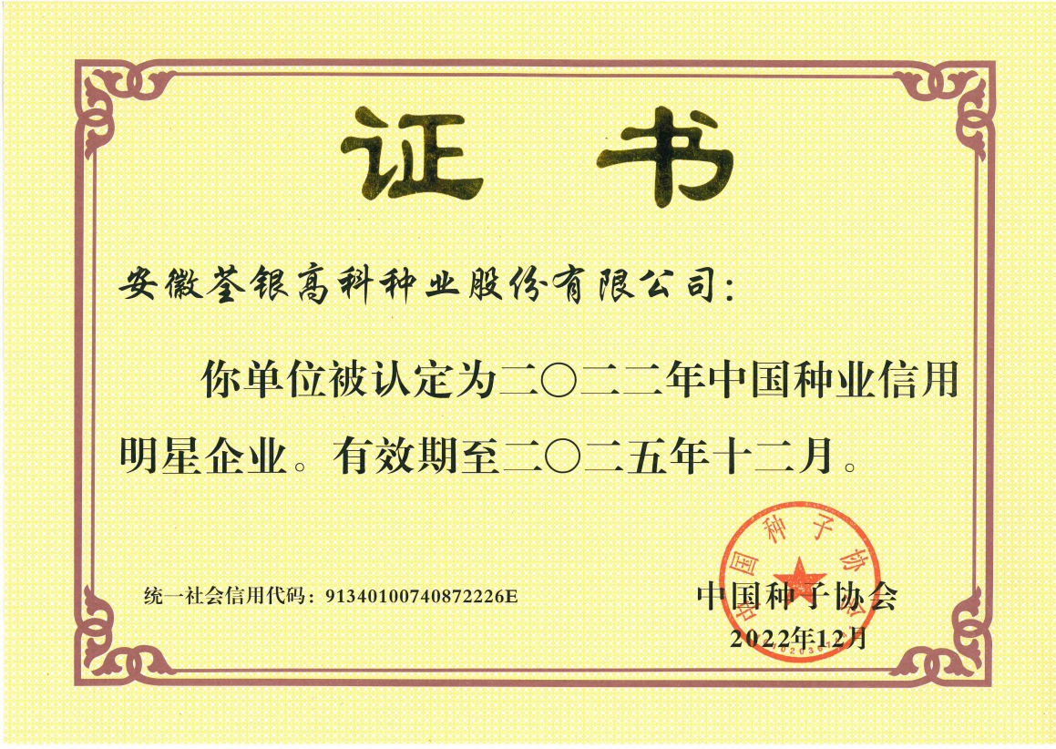 中國種業信用明星企業